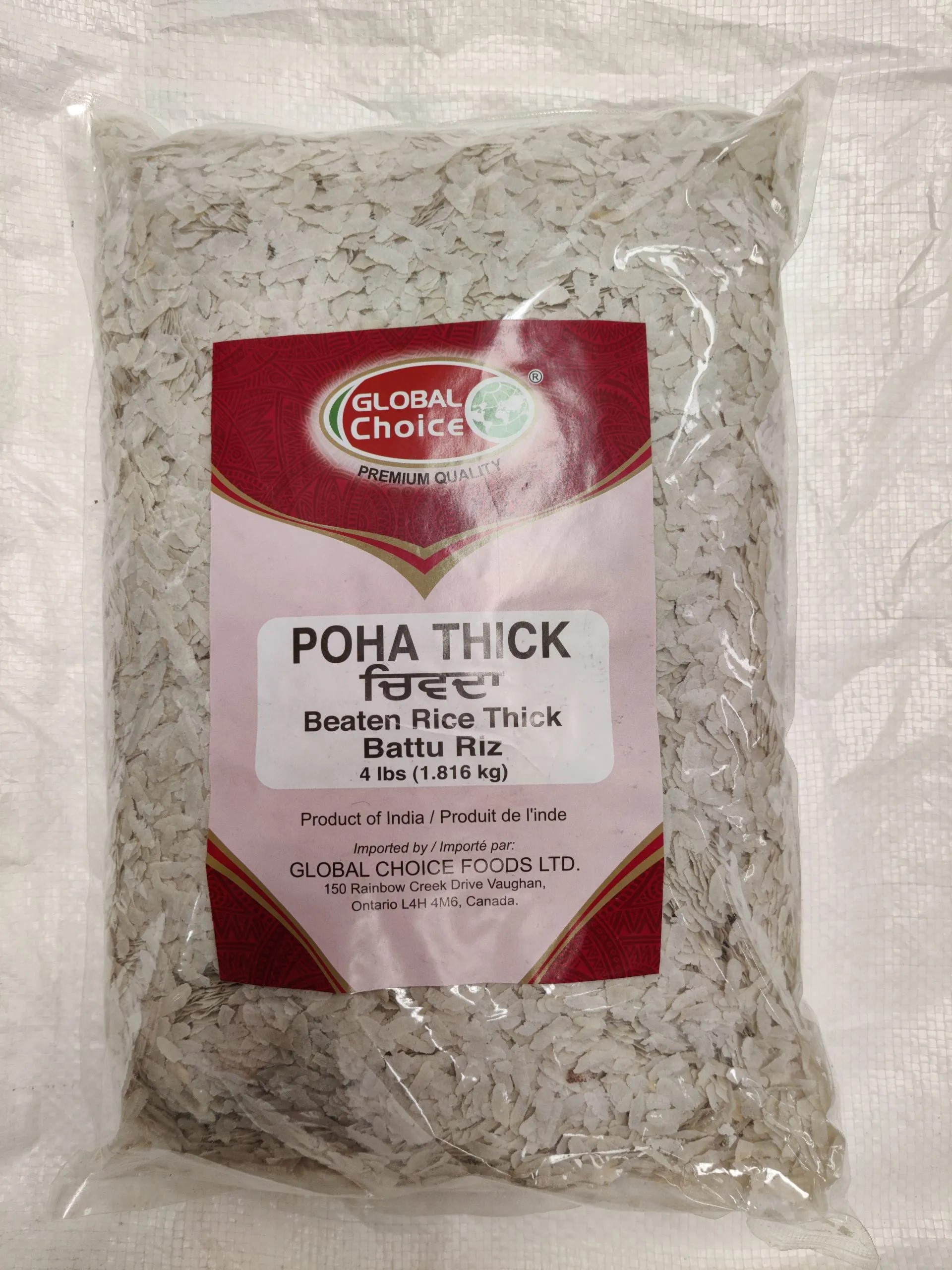Thick is a very thick variety of flattened rice and is suitable for making dishes like Pohe, Kanda Pohe Poha (Chivda).